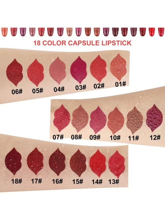 evpct 9Pcs Mini Pills Lipstick Capsules set for $5.00 or $10 for 18 pieces Set for Women Waterproof Long Lasting Deep Red Matte Small Magic Permanent Lipstick 24 Hour Lipstick Bulk Samples Sampler labiales mate 24 horas originales 01